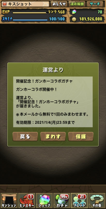 ちなみにコラボ開催を記念しての無料ガチャはパッとしない結果でした(笑)