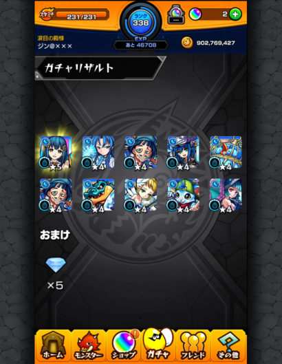 で、サブアカの方なんですが、オーブが50個を超えていた事と本アカの引きがまぁまぁ良かったので10連を回してみようかと。