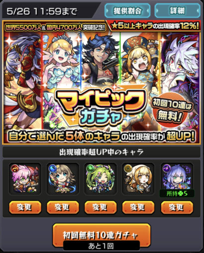 さて、今日は初回10連無料のマイピックガチャを回してみようと思います!