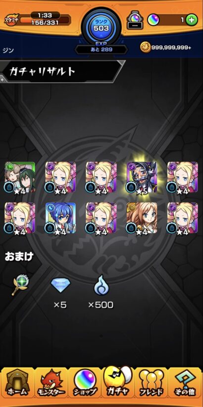 で、数時間コツコツ周回して50個集めて迷わずガチャって…↓