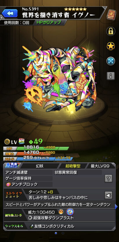 轟絶キャラであり運極ではないんですけど、強力である事に変わらないので次回はイグノーの厳選に決めました。