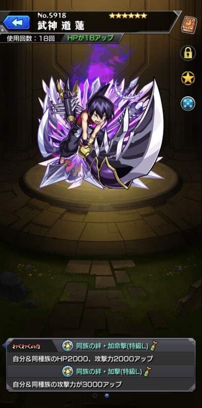 シャーマンキングコラボの中では推しキャラでありますが、性能としては特化してどこかに連れて行けるってのはあんまりないので、現在は倉庫番として活躍してもらっています(^^;;