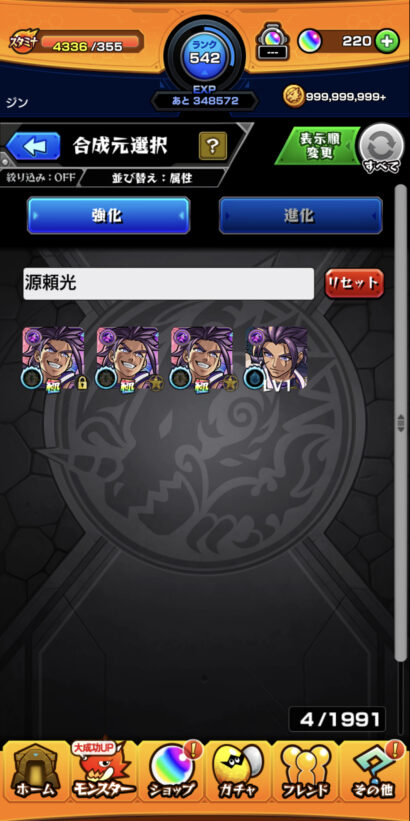 さすがに4体所持してても使わないと思うので、合成してラック上げに使いました(笑)