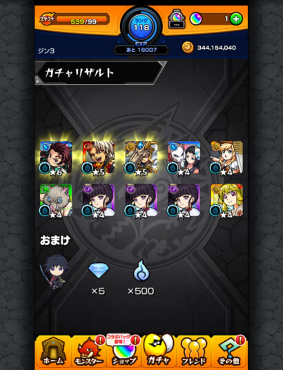 寝ぼけてたので定かではありませんが、ガチャドラが2周回ったような気がしたのでドキドキしてましたが、まさかの炭治郎(゚ω゚)