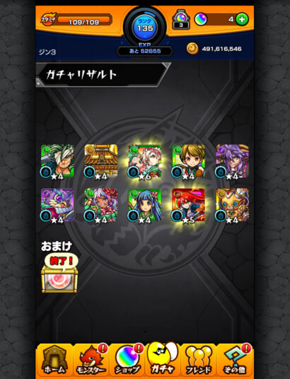 レギュラーはねぇなという事で50連確定のセーフティーか10連or100連のギャンブル性が高いチャレンジかの2択で考えた結果、チャレンジを選択しましたが、欲が出過ぎたせいかあっけなく10連でフィニッシュ。
