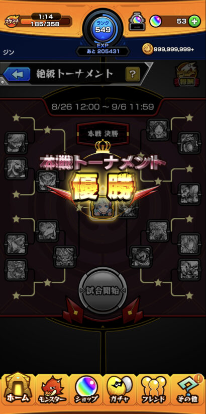 とりあえず厳選でもしようかと思ってましたが、絶級トーナメントが実施されている事をすっかり忘れていました💦