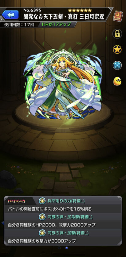 つい最近宗近の厳選をしたばかりだったのですが、厳選するキャラを何にしようかとBOX見ながら考えていたらもう1体いる事に気付きました( ゚Д゚)