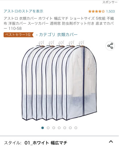 シーズンオフで長い事着ない時とかの洋服の保護として買っておこうかな…