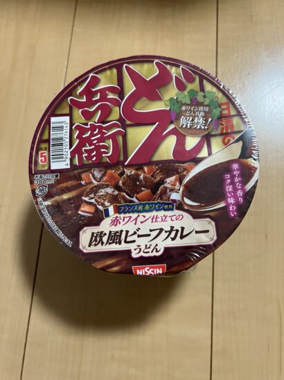 どん兵衛といえばきつねうどんばかり食べる私ですが、今回見つけたのは「赤ワイン仕立ての欧風ビーフカレーうどん」