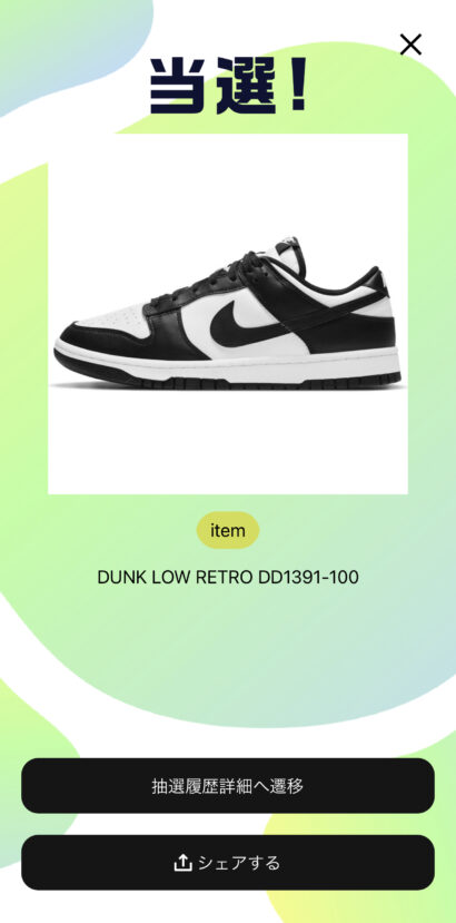 今日はこの間、抽選申し込みをしていたDunkの当落結果の発表日です!