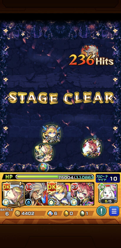 前よりもキャラクターが強力になっている事や、まぐれショットが要所で炸裂した事も今回のクリアに関わっているとは思いますが、それでもやっぱり嬉しいものです✨