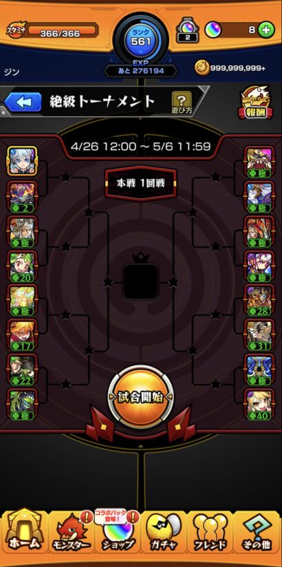 さて、そんな今日はやっていなかった絶級トーナメントを進めようと思います!