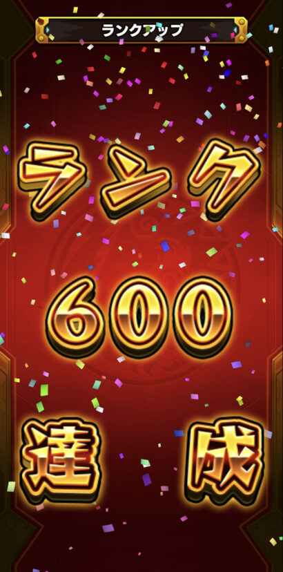 4手抜けが上手くいかなかったりもありましたが、周回を重ねてランク600に到達✨