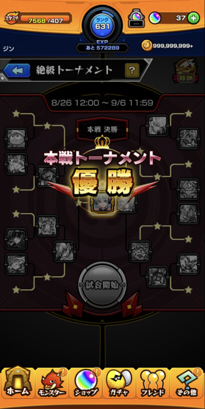 さて、そんな今日は絶級トーナメントを片付ける事にしました!