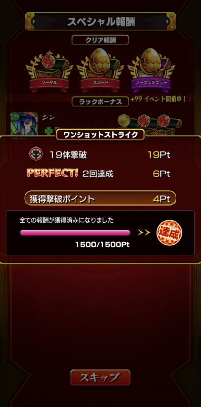 残り半分かと思うとしんどいのが正直なところですが、隙間時間でちまちまと周回してなんとかイベント終了前にポイントを上限まで貯める事が出来ました✨