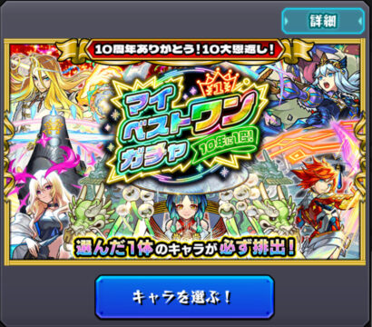 さて、そんな今日はこの間発表された10周年を記念した最強の無料ガチャ「マイベストワンガチャ」について。