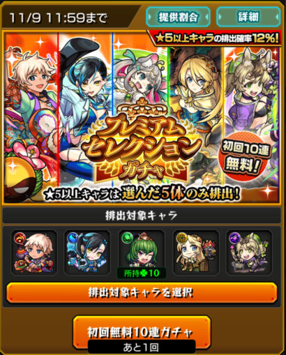 10連1回だけ無料で回せるとの事で無料分だけやろうと思います!