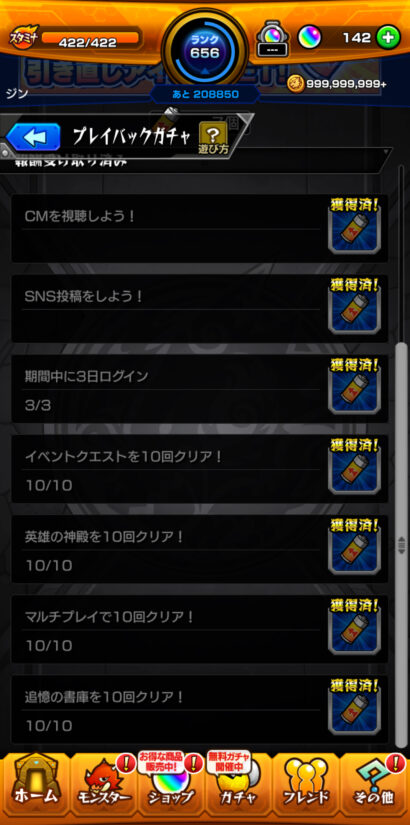 これは毎年やっているか覚えていないんですが、明日開催されるプレイバックガチャ。