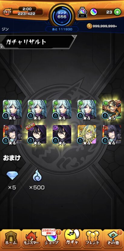 今回も妹にガチャをお願いして残りは回してもらいましたが、こちらも中々今回は引きがイマイチのようでコラボキャラが出てくれません💦