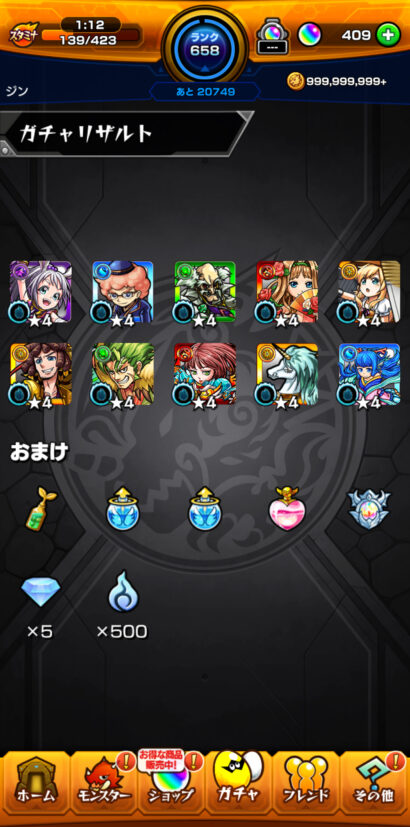 毎年楽しみにしている新年1発目のガチャですから景気良く出て欲しいところですが、肝心な1回目の10連の結果は↓