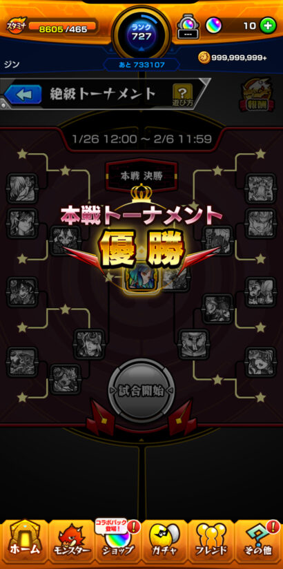 さて、そんな今日は書庫回収などでオーブ回収をしていましたが、忘れていたコンテンツ「絶級トーナメント」