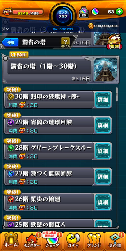 さて、そんな今日は無事に禁忌の獄を30までクリアする事が出来ました。