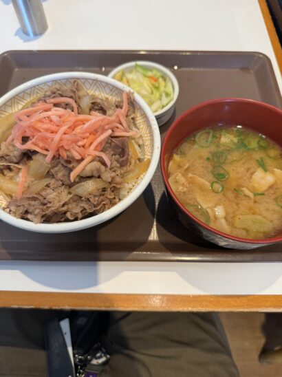 昨日の買い物の後にご飯を一切食べてなかったので、予定が済んだ後は外食で久々にすき家へ。