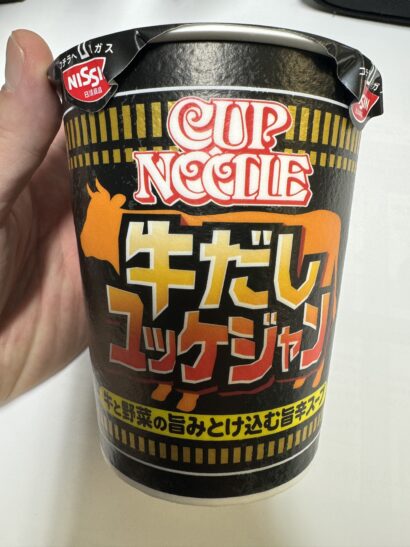 日勤の時はだいたいお弁当を事前に頼んでおく事がほとんどなのですが、今日は起きてから昼はカップ麺にしようという事で、選んだのがコチラ↓