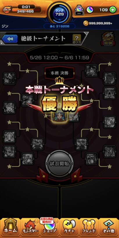 今回は今までよりトーナメントでぶつかるクエストが簡単だったようで、特に手こずるような事もなくあっさりクリア出来ました(^^)