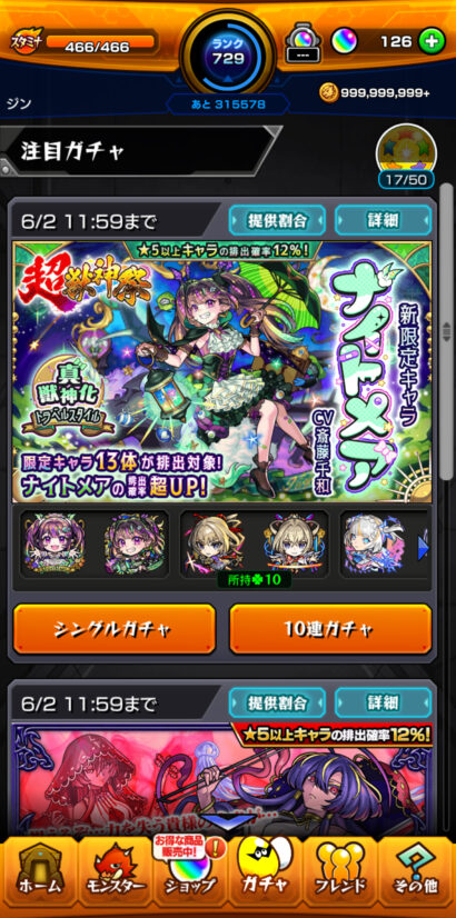 ナイトメアが勿論欲しいけども、超・獣神祭限定キャラが何かしら出れば勝ちと言ってもいいかな。