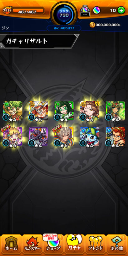 最初の10連目で☆5〜6キャラはまあまあ出ましたが、あんまりパッとするような結果ではなかったです。