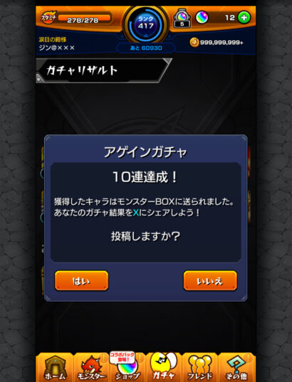 昨日は3号機のアゲインガチャを回しまして見事に100連達成✨