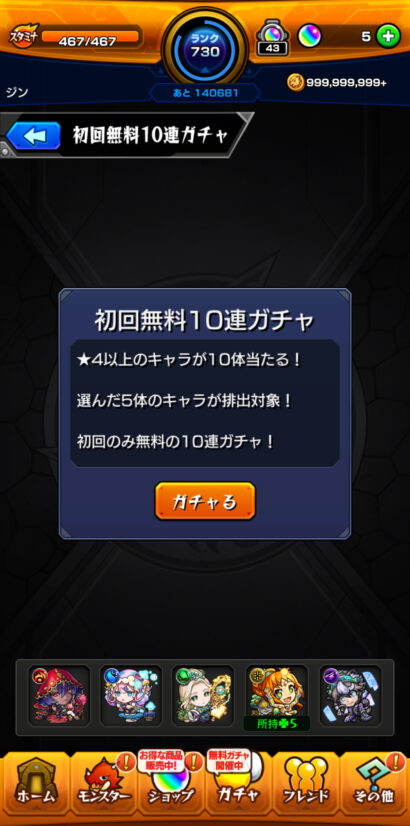 何故かと言えば初回の10連は無料で回す事が出来るから。