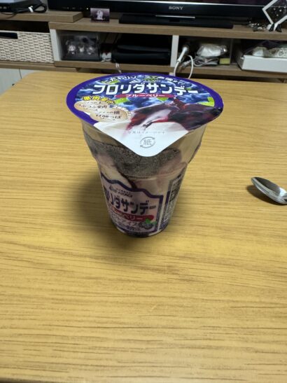 普段はストロベリー味を買う事の方が多いのですが、たまたまストロベリー味だけ品切れだったので、今回はブルーベリー味にしてみました。
