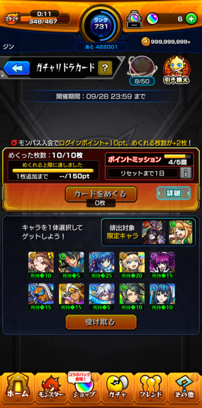 さて、そんな今日は今月のガチャリドラカードからキャラクターを選んでいこうと思います。