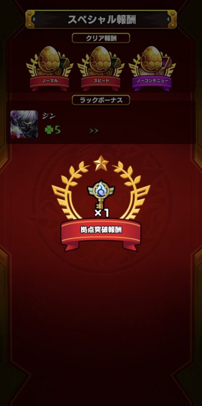 未開の大地実装当初と比べるとキャラもそこそこ集まっていたので、今回は普通にクリアできました( ^ω^ )