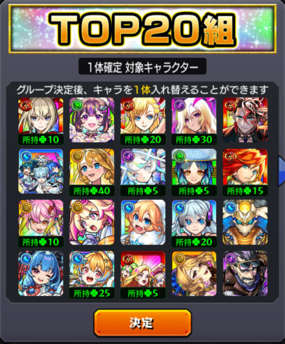 今回もいくつかのグループから1つ選択可能になってますが、私は今回もTOP20組にしました。
