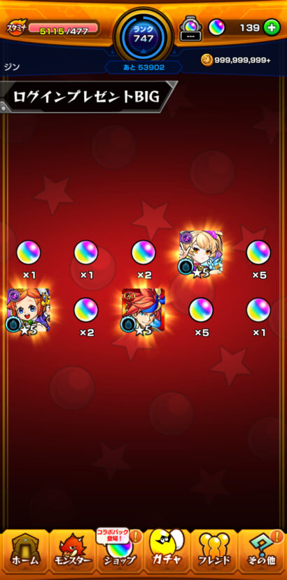 さて、そんな今日はすっかり忘れていたログインプレゼントBIG。