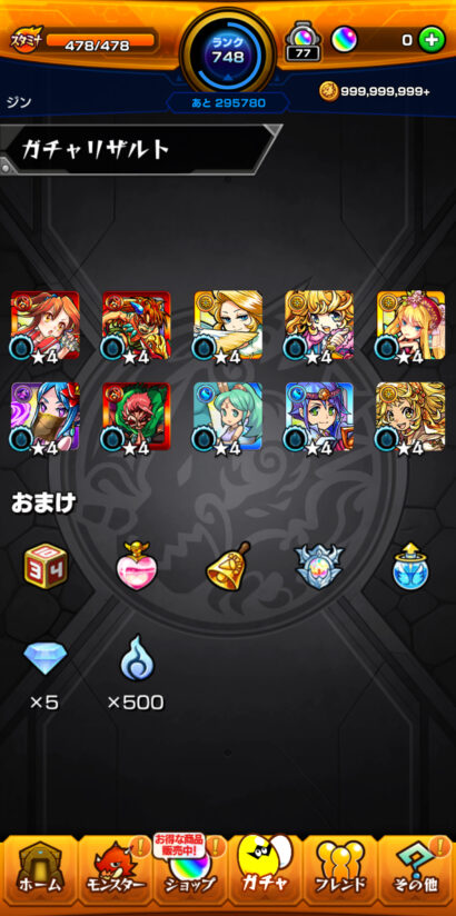 幸いまだ書庫回収でオーブ回収出来そうなので、根気よくやって10連分やっと貯まりましてガチャガチャ。