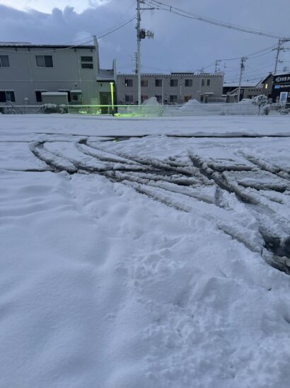 会社の駐車場に着いてみると、私の地元よりも雪は少なく感じました💦