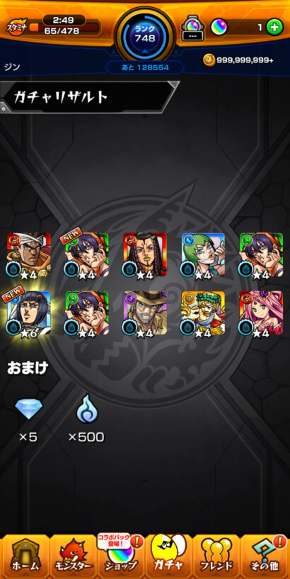 さて、そんな今日はJOJOコラボが始まってそこそこ経ちますが、未だにガチャでは☆5のコラボキャラはゲット出来ておりません。