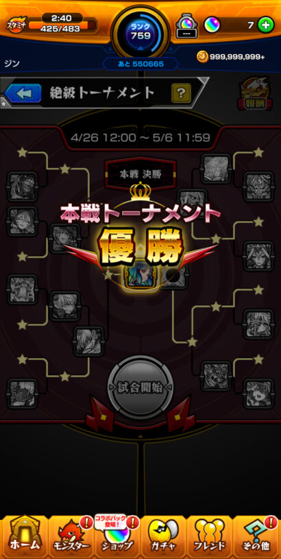 最近は挑戦した事のない轟絶クエストとかだと簡単に負けたりしますが、今回は当たった相手に救われました。