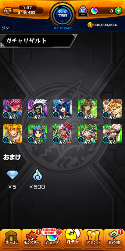 またかき集めて期間内に間に合えばコラボキャラを狙って勝負していきたいと思います。