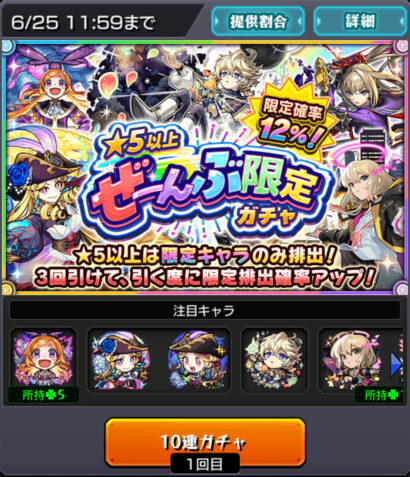 今日の12時から始まった「☆5以上ぜーんぶ限定ガチャ」