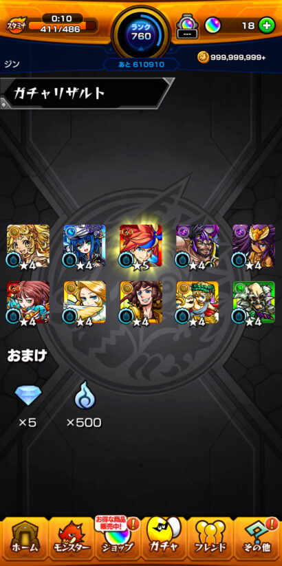 ぶっちゃけ回そうか悩みましたが、せっかくオーブあるし運試しに1回くらいは回しても良いかなと。