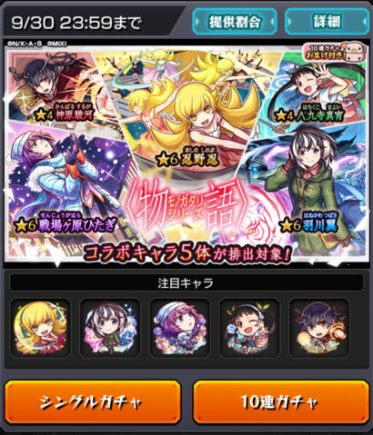 さて、そんな今日は物語シリーズコラボが昼から実装されましたので、コラボクエストでオーブ外出しつつガチャを回していこうと思います!