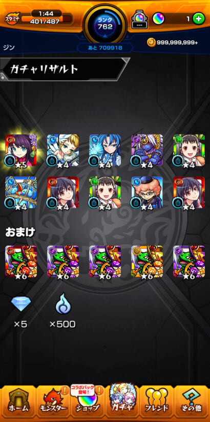 実は昨日、10連分貯まってましたので、ラストになるだろうと腹を括って10連回しました!