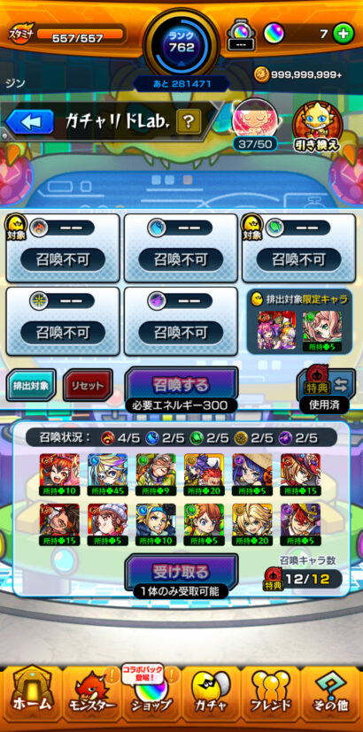 さて、そんな今日はガチャリドLab.で上限まで召喚を行ったので、召喚した中から選んでいこうと思います!