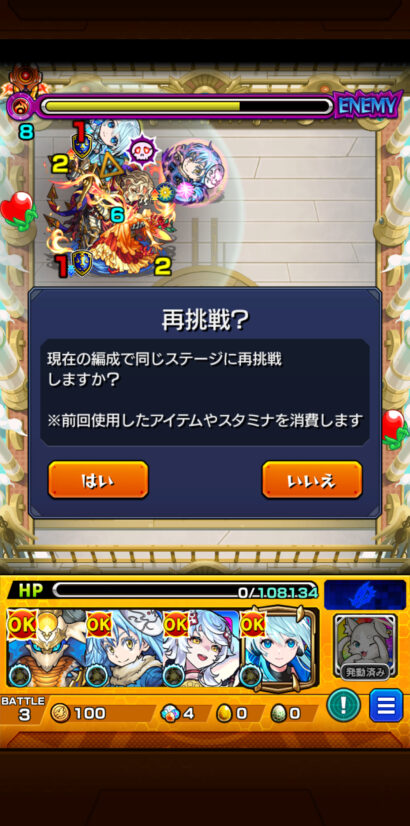 六の間をすっ飛ばして七の間以降にチャレンジする事も可能ではありますが、階層を飛ばすのもなんだか気持ち悪いので、もうちょっと粘ってみようかと。