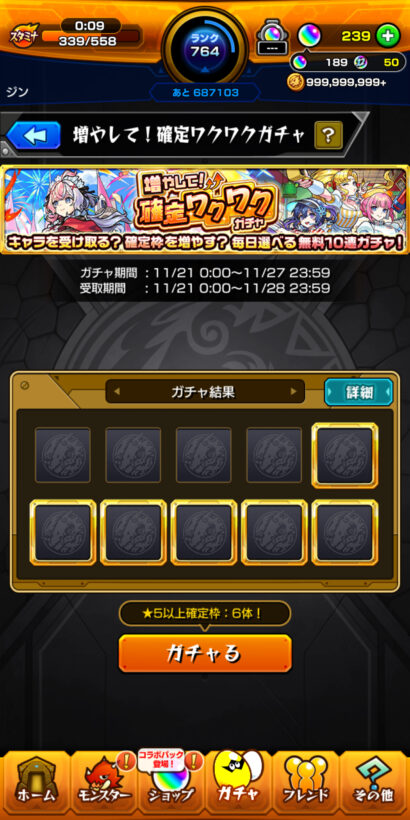さて、そんな今日は期間ギリギリまで回した「増やして!確定ワクワクガチャ」